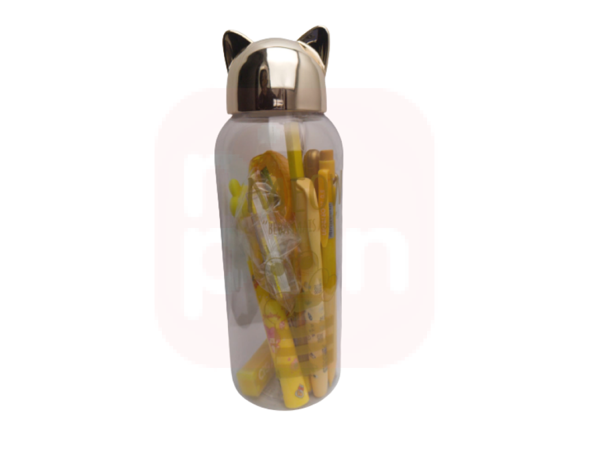 Kit Presenteável Monocromático com Estojo Garrafa Gato plástico tampa na cor dourada