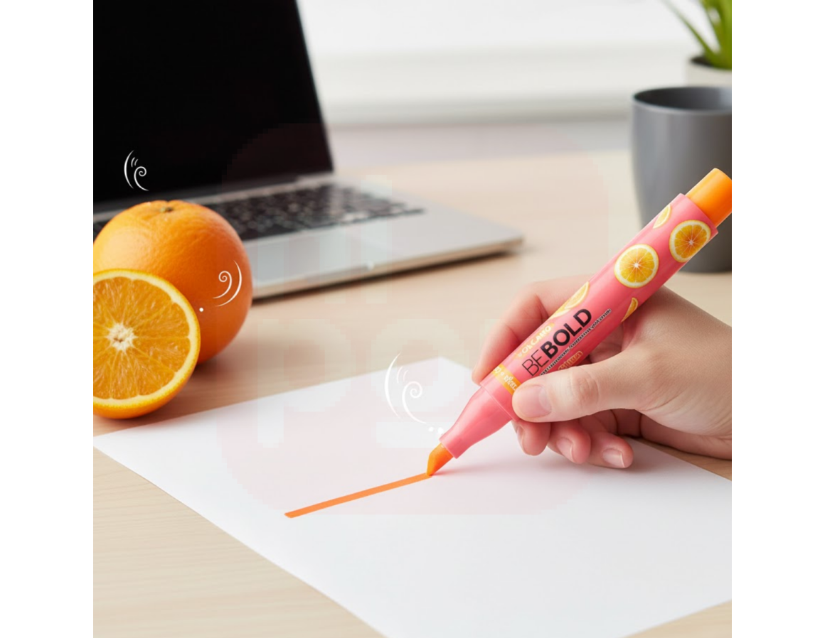 O Marca Texto Be Bold Highlighter Fruit Edition Volcano chegou para energizar suas anotações com muita cor, personalidade e um cheirinho cítrico irresistível de laranja! Com uma tonalidade laranja vibrante, ele garante destaque visual imediato, sem deixar de lado o estilo e a criatividade.
