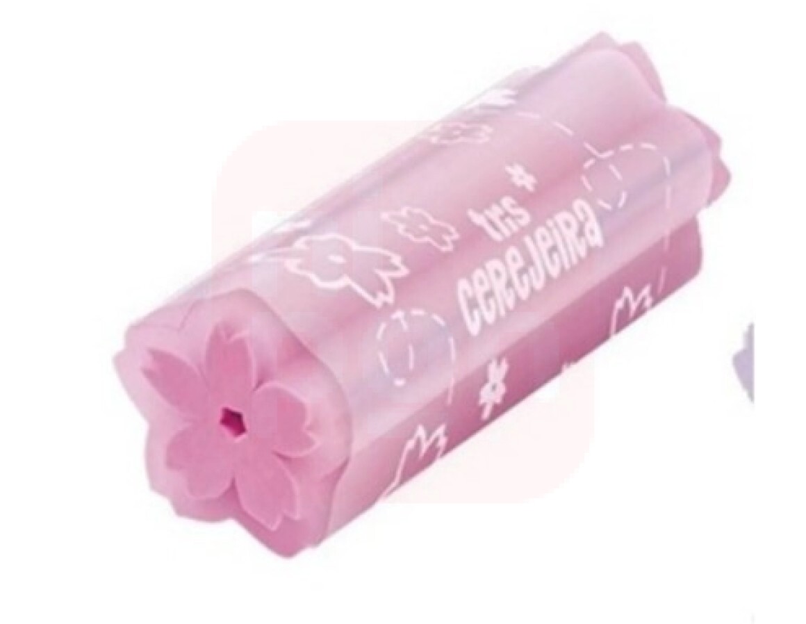 Inspiradas nas flores de cerejeira, a borracha possui textura macia e com flor em todo o interior da borracha. É não tóxica e tem rótulo plástico protetor. Dimensões: 2,2x5x2,2cm.