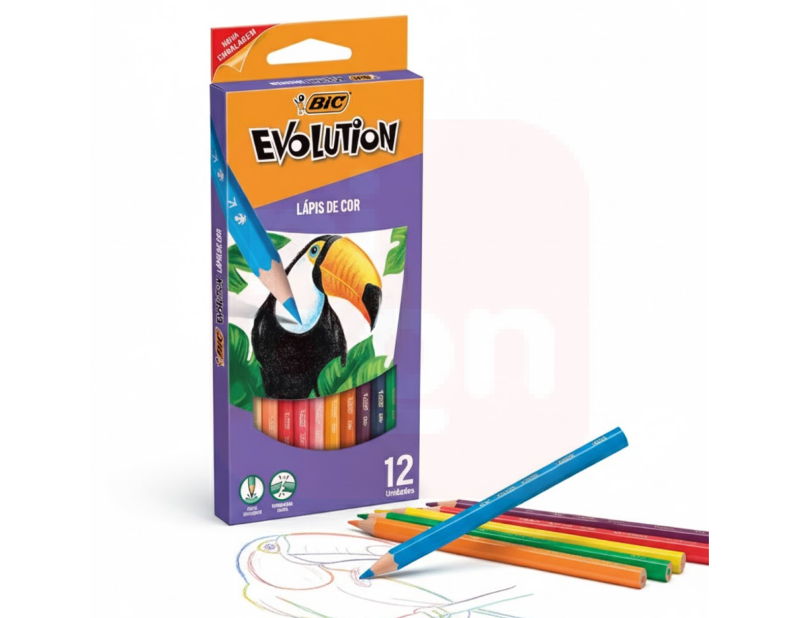 Graças ao exclusivo processo de quadri-extrusão da BIC, os lápis Evolution são resistentes, possuem ponta firme e fácil de apontar, além de minas macias que proporcionam um traço suave e cobertura excelente. As 12 cores vibrantes e intensas tornam o desenho mais colorido e divertido, sendo ideais para atividades escolares e artísticas.