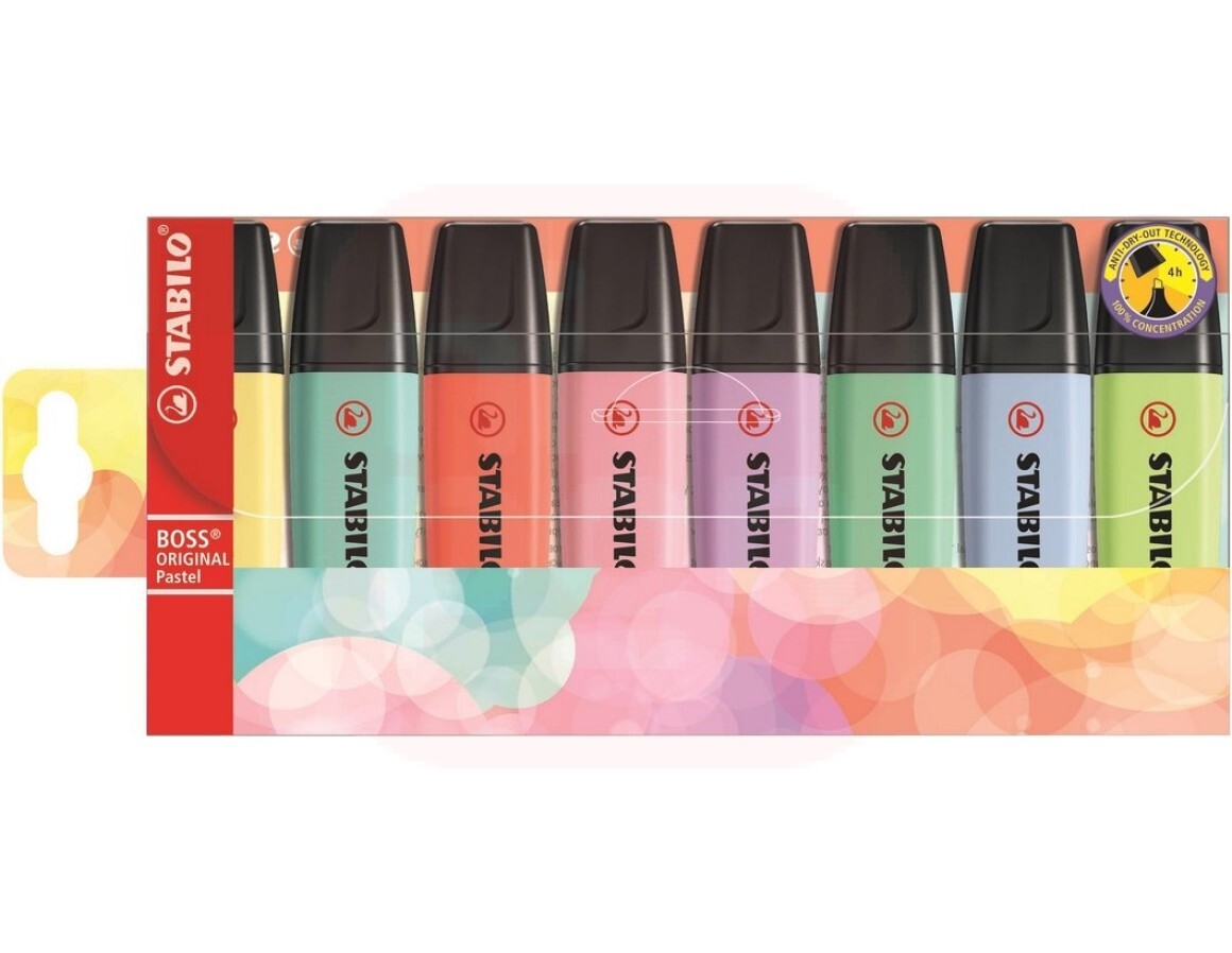 Os Marcadores Stabilo Boss Pastel, trazem novas cores, tons mais suaves que os habituais que estão fazendo a cabeça de estudantes, universitários, e até profissionais.
