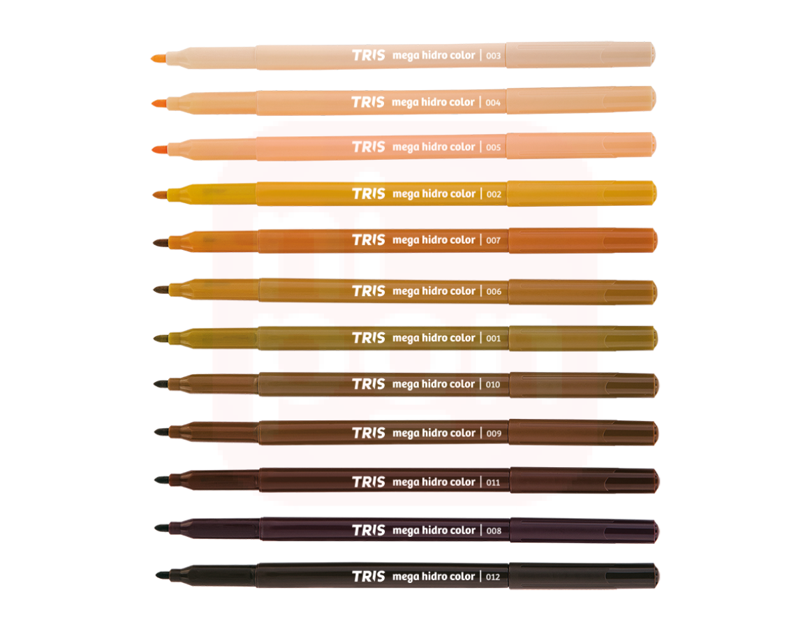 Canetinha 12 Cores Tons de Pele Mega Hidro Color - Tris