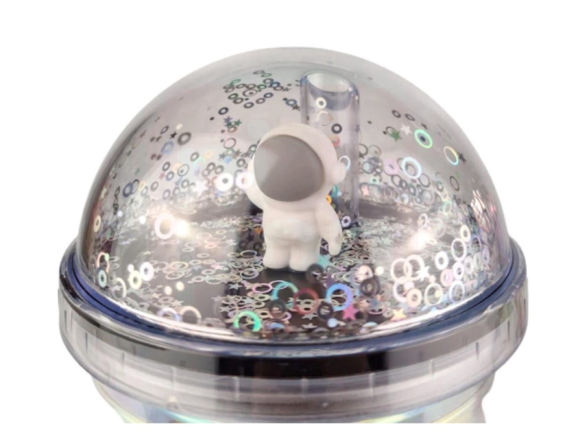 2. Copo Com Led Plástico E Canudo Personagem Astronauta 450Ml