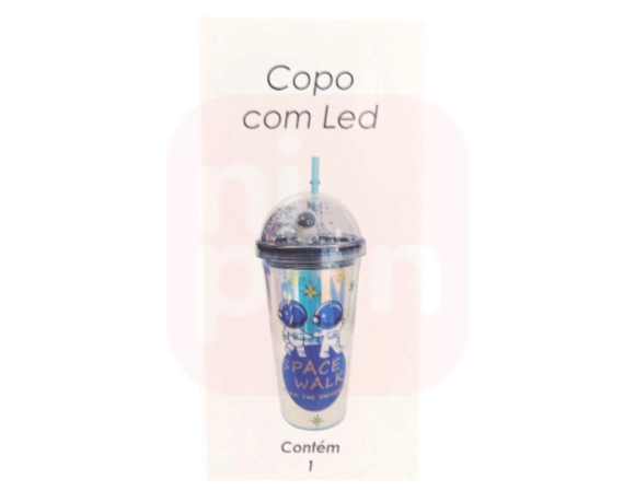 Copo Com Led Plástico E Canudo Personagem Astronauta 450Ml