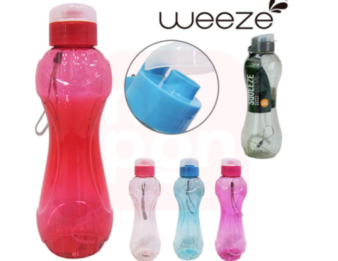 Garrafa Squeeze De Plastico Pet Tampa C/ Alça Weeze Transcolor 600ml