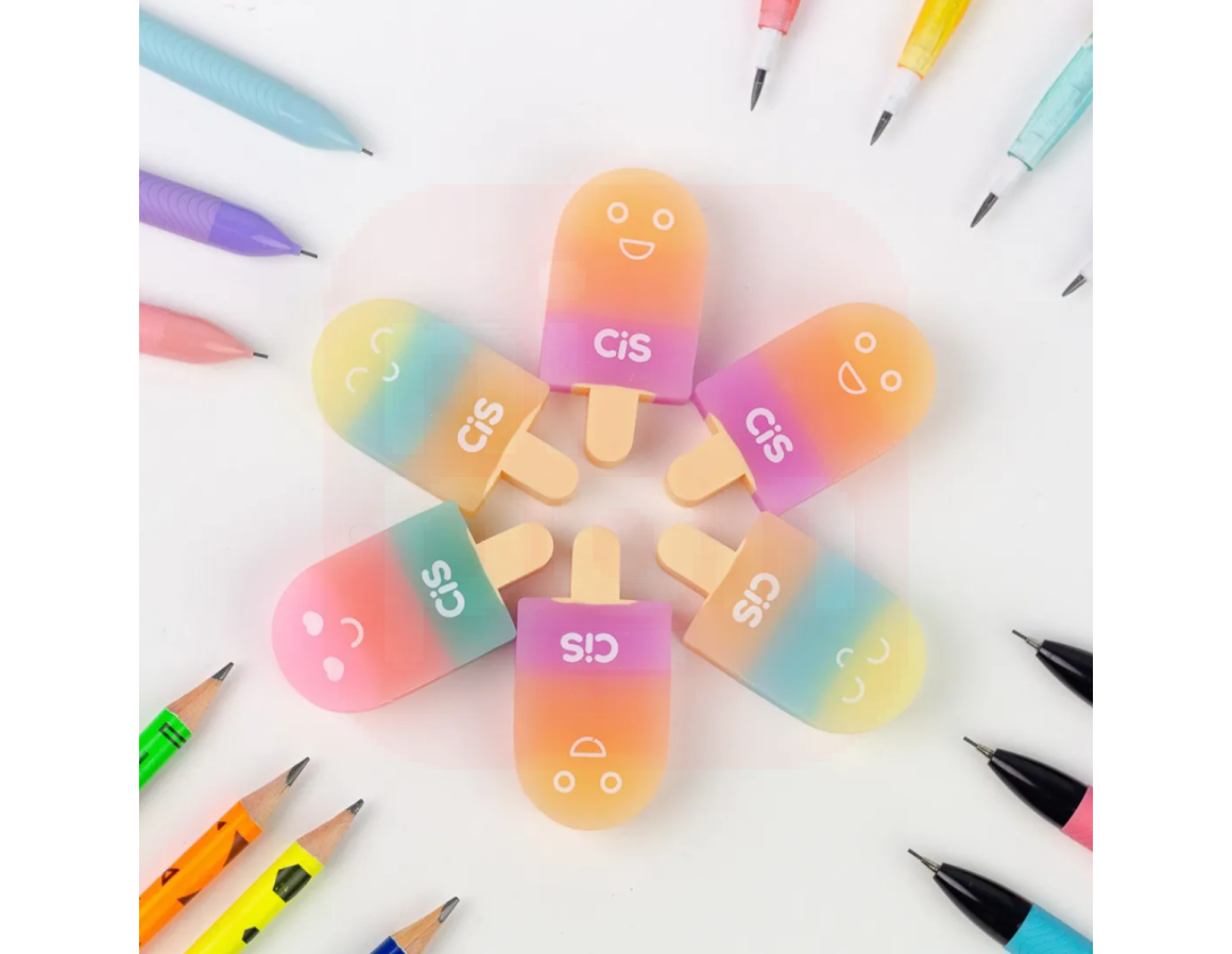 A Borracha Fantasia Picolé Cis é perfeita para tornar o momento de estudar ou desenhar muito mais divertido! Com design criativo em formato de picolé, ela combina funcionalidade e charme. Ideal para uso escolar, escritório ou para quem adora itens de papelaria diferenciados. Apaga com eficiência sem danificar o papel e é uma ótima opção para presentear.